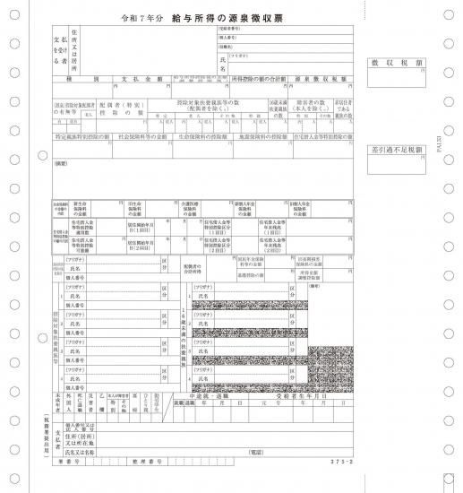 令和7年 源泉徴収票 連続用紙ドットプリンタ用